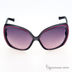 Большие креативные солнцезащитные очки в стильной пластиковой оправе. Рамка и заушники декорирована орнаментом лилового цвета. Заушник имеет оригинальную форму. Наконечник слегка изогнутой формы, линзы из высококачественного пластика.