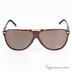 Навеянная модой модель солнцезащитных очков сделана из пластика. Дужки удивляют оригинальной отделкой с фирменной надписью логотипа бренда. Дужки изогнутой формы. Линзы выполнены из полимерного пластика и окрашены в коричневый цвет.