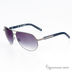 Навеянная модой модель солнцезащитных очков сделана из металла. Дужки из пластика удивляют оригинальной отделкой с фирменной надписью логотипа бренда на металлической основе. Мостик тонкий, дужки изогнутой формы. Линзы выполнены из полимерного пластика и окрашены в фиолетовый цвет.