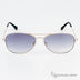 Навеянная модой модель солнцезащитных очков сделана из металла. Дужки удивляют оригинальной отделкой с фирменной надписью логотипа бренда. Мостик тонкий, дужки изогнутой формы. Линзы выполнены из полимерного пластика и окрашены в голубой цвет.