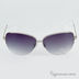 Навеянная модой модель солнцезащитных очков сделана из металла. Дужки удивляют оригинальной отделкой с фирменной надписью логотипа бренда. Дужки изогнутой формы. Линзы выполнены из полимерного пластика и окрашены в фиолетовый цвет.