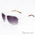 Навеянная модой модель солнцезащитных очков сделана из металла. Дужки удивляют оригинальной отделкой с фирменной надписью логотипа бренда. Мостик тонкий, дужки изогнутой формы. Линзы выполнены из полимерного пластика и окрашены в фиолетовый цвет.