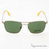 Эффектная модель солнцезащитных очков в трендовой оправе выполненной из металла. Тонкие дужки с пластиковыми вставками декорированными металлическими вставками в виде логотипа бренда. Тонкий мостик. Полимерные (поликарбонатные) линзы зеленого оттенка. Тонкий мостик.