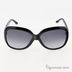Элегантные женские очки из пластика черного цвета. Внутренняя часть оправы выполнена из пластика с принтом. Основание заушников дополнено надписью в виде логотипа бренда и стразами. Линзы из высококачественного полимера, цвет темный без градиента.
