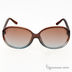Стильные пластика коричневого цвета. Рамка округлой формы. Основание заушников дополнено маленькой вставкой в виде логотипа бренда. Заушники из пластика в тон оправы. Наконечник слегка изогнутой формы. Линзы из высококачественного полимера, цвет темно-коричневый с градиентом.