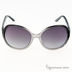 Ультрамодные женские солнцезащитные очки в оправе из полупрозрачного пластика дымчатого цвета. Рамка округлой формы. Основание заушников дополнено металлической вставкой в виде логотипа бренда и крупной стразой. Заушники из пластика черного. Наконечник слегка изогнутой формы. Линзы из высококачественного полимера, цвет темно-серый с легким градиентом.