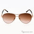 Оригинальные солнцезащитные очки в стильной металлической оправе темно-золотого цвета. Верхняя и боковые части украшены стразами. Заушники выполнены из пластика с разноцветным принтом. Наконечник слегка изогнутой формы. Линзы из высококачественного полимера, цвет темно-коричневый с легким градиентом.
