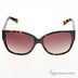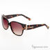 Изящные солнцезащитные очки в модной прилегающей к лицу оправе. Состоят из высококачественного пластика, дужек с вставкой логотипом бренда золотого цвета и металлической вставкой с бусинами у основания. Полимерные (поликарбонатные) линзы градиентно окрашенные в коричневый цвет. Цветовая палитра охватывает черный и желтый цвета. Мостик широкий, наконечник дужек слегка изогнутой формы.