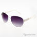Роскошные солнцезащитные очки. Состоят из сплава высококачественных металлов, дужек из полимерного пластика с гравированной надписью логотипом бренда, с металлической вставкой у основания декорированной стразами. Полимерные (поликарбонатные) линзы градиентно окрашенные в черный цвет. Мостик тонкий, наконечник дужек слегка изогнутой формы. Цветовая гамма охватывает нежные оттенки кремового, белого и серебряного цветов.