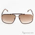 Мужская модель в авангардном стиле. Пластиковая рамка коричневого цвета. Дужки украшены металлической вставкой в виде гравированной надписи логотипа бренда, полимерные линзы окрашенные в коричневый цвет с градиентом. Цветовая гамма охватывает коричневый и золотой.