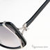 Оригинальные солнцезащитные очки округлой формы с узкой рамкой из черного пластика. Основание рамки дополнено декоративными накладками из светлого металла. Линзы серого оттенка с легким градиентом. Заушники прямой формы выполнены из высококачественного пластика. Основание заушников декорировано маленьким бантиком. Пружинный механизм раскрытия заушников позволяет с удобством и комфортом одевать и снимать очки.