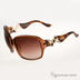 Крупные очки с градиентными линзами в полупрозрачной пластиковой оправе коричневого оттенка. Основание заушников декорировано металлической вставкой со стразами Сваровски и надписью Moschino. Кончики заушников инкрустированы камнями Сваровски в форме сердца.