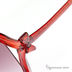 Трендовые солнцезащитные очки. Cсостоят из полимерной высококачественной (пластиковой) полупрозрачной оправы темно-оранжевого цвета с декоративным элементом в форме бантика, тонких дужек того же цвета. Полимерные (поликарбонатные) градиентно окрашенные линзы фиолетового оттенка. Наконечник дужки слегка изогнутой формы, тонкий мостик.