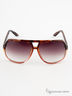 Стильная модель солнцезащитных очков выполнена из высококачественного пластика. Наконечник дужек слегка изогнутой формы, узкий мостик. Полимерные (поликарбонатные) линзы градиентно окрашены в коричневый цвет. Декор в виде вставки с логотипом бренда.