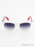 Стильная модель солнцезащитных очков выполнена из высококачественного пластика. Наконечник дужек слегка изогнутой формы, широкий мостик. Линзы с защитой от ультрафиолета окрашены в серый цвет. Декор в виде контрастной расцветки дужек очков.