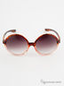 Эффектная модель солнцезащитных очков выполнена из высококачественного пластика. Наконечник дужек слегка изогнутой формы, широкий мостик. Полимерные (поликарбонатные) линзы окрашенные в коричневый градиент. Декор в виде вставки в дужки очков.