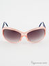 Стильная модель солнцезащитных очков выполнена из высококачественного пластика. Наконечник дужек слегка изогнутой формы, широкий мостик. Полимерные (поликарбонатные) линзы градиентно окрашены в коричневый цвет. Декор в виде вставки с логотипом бренда.