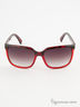 Стильная модель солнцезащитных очков выполнена из высококачественного пластика. Наконечник дужек слегка изогнутой формы, широкий мостик. Полимерные (поликарбонатные) линзы градиентно окрашены в серый цвет. Декор в виде вставки с логотипом бренда.