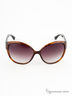 Изящная модель солнцезащитных очков выполнена из высококачественного пластика. Наконечник дужек слегка изогнутой формы, узкий мостик. Полимерные (поликарбонатные) линзы градиентно окрашены в коричневый цвет. Декор в виде вставки с логотипом бренда.