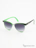Изящная модель солнцезащитных очков выполнена из высококачественного пластика. Наконечник дужек изогнутой формы, широкий мостик. Линзы с защитой от ультрафиолета градиентно окрашены в серый цвет. Декор в виде фактурного рисунка на дужках очков.