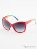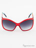 Изящная модель солнцезащитных очков выполнена из высококачественного пластика. Наконечник дужек слегка изогнутой формы, широкий мостик. Полимерные (поликарбонатные) линзы градиентно окрашены в серый цвет. Декор в виде принта на дужках очков.