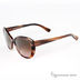 Креативные солнцезащитные очки. Cостоят из полимерной (пластиковой) оправы коричневого с бежевым цвета с декоративной отделкой по бокам в виде розы, дужек того же цвета с надписью-эмблемой золотого цвета у основания. Наконечник дужки выполнен с декоративной отделкой в виде розы. Полимерные (поликарбонатные) градиентно окрашенные линзы коричневого оттенка. Наконечник слегка изогнутой формы, мостик средней толщины.