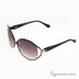 Оригинальные очки в металлической оправе. Рамка округлой формы. Основание заушников декорировано большой вставкой в виде логотипа бренда с вставкой из страз. Заушники выполнены из глянцевого пластика. Наконечник из глянцевого пластика слегка изогнутой формы. Линзы из высококачественного пластика, цвет темно-серого с легким градиентом.