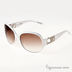 Изящные женские очки в стильной оправе из глянцевого пластика белого цвета. Оригинальное дизайнерское решение в виде металлической накладки - логотипа у основания заушника и стразами. Заушник толстой формы у основания, наконечник слегка изогнутой формы.