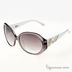 Элегантные женские очки в стильной оправе из пластика. Оправа оригинальной формы из полупрозрачного пластика серых оттенков. Оригинальное дизайнерское решение в виде металлической накладки - логотипа у основания заушника со стразами и рисунком. Заушники из белого глянцевого пластика, толстая форма у основания, наконечник слегка изогнутой формы.