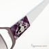 Изящные женские очки в стильной металлической оправе. Линзы не касаются рамки с боковых сторон. Оригинальное дизайнерское решение в виде металлической накладки - логотипа у основания заушника и креативным рисунком. Заушники из белого пластика, наконечник изогнутой формы.
