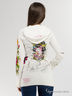 Олимпийка с, капюшоном, V-образным вырезом и карманами "кенгуру", украшена оригинальным принтом Ed Hardy "The Way of Life" с изображением гейши, кинжалов, цветов, надписью "Eternal Love" и стразами.