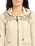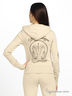 Олимпийка с капюшоном и длинным рукавом, украшенная винтажным принтом в виде герба с изображением двух девушек держащих меч. Застежка на молнию. На полочке расположены два удобных кармана. Спинка изделия украшена стразами и цепочкой.