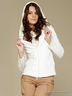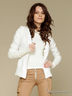 Мягкая приталенная олимпийка. Капюшон, длинные рукава с вязаными вставками, застегивается на молнию.