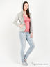 Модная олимпийка из мягкого трикотажного велюра. Модель дополнена капюшоном. Застежка на молнию. Длинные рукава с манжетами. На полочках два накладных кармана. Манжеты, низ изделия и входы в карманы выполнены из фактурного эластичного трикотажа.