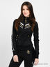 Стильная олимпийка прямого кроя. Отложной воротник-стойка. Длинные рукава. Застежка на молнию. 2 прорезных кармана на молнии. Декоративные элементы.