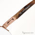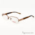 Стильная медицинская оправа из тонкого металла бронзового цвета. Нижняя часть рамки отсутствует. Основание заушников дополнено металлической вставкой орнаментом. Заушники выполнены из глянцевого пластика с разноцветным принтом. Наконечник слегка изогнутой формы.