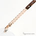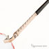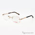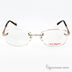 Изящная медицинская оправа из тонкого металла золотого цвета. Рамка отсутствует. Основание заушников декорировано орнаментом. Заушники выполнены из двухцветного пластика. Внешняя сторона серого цвета, внутренняя выполнена с принтом коричнево-бежевого цвета. Наконечник слегка изогнутой формы.