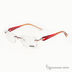 Классическая медицинская оправа с безрамочным креплением. Основание заушников выполнено из металла золотистого цвета, наконечники заушников оригинального дизайна из высококачественного пластика красного цвета с градиентом. Пружинный механизм раскрытия заушников позволяет с удобством и комфортом одевать и снимать очки.
