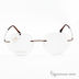 Оригинальная медицинская оправа из титана. Оправа практически невесомая. Линзы округлой формы. Тонкий титановый мостик серебристого цвета. Линза крепится к заушникам, рамка отсутствует. Заушники из тонкого титана с рисунком на внешней стороне. Наконечник из полупрозрачного пластика слегка изогнутой формы.