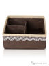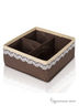 Коробочка для мелочей "Chocolate Cake" - аккуратная низкая коробочка с 3 отделениями: одно - размером 14х7 см и 2 отделения размером 7х7см. Аккуратная коробочка цвета молочного шоколада, отделанная нежным белым кружевом - совсем как маленькое пирожное! Идеально подходит для хранения лаков для ногтей и средств по уходу, прокладок, тампонов, а также мелочей в коридоре: ключей, телефонов, зарядных устройств, батареек, бумажек для записей. Размер: 6х14х14 см.