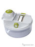 В наборе: Контейнер (2,5л/24см), крышка-держатель для ножей, нож с двойн. лезвием / нарезки ровн. или рифлен. ломтиками, нож / шинкования с переключателем ножей и регулятором толщ. нарезки, держатель /продуктов.