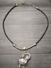 Оригинальное украшение на шею из сплава замак (смесь цинка, магния и меди) и кожаного ремешка. Украшения из замака придадут Вам дерзости, женственности и узнаваемости. Для ухода за изделием необходимо слегка протереть металлическую составляющую тканью, смоченным в нашатыре, либо аккуратно протереть ластиком.