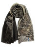 Палантин черно-серый с бежевым оттенком из полиэстера, очень широкий с растительным принтом. Края палантина обработаны машинной строчкой. Размер: 120х160 см.