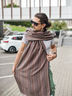Палантин итальянского бренда VENERA из шерсти и вискозы. Палантин коричневого цвета в полоску, короткая бахрома по краю. Большой и длинный палантин. Размер: 65х180 см.