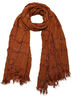 Палантин приятной терракотовой расцветки с принтом в виде красных полос и клетки. Ткань рельефная, имеющая слегка растягивающую поверхность. Размер: 80х190 см.