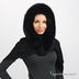 Очень теплый палантин-капюшон с пушистым мехом застегивается чуть ниже подбородка.