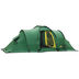 Классическая кемпинговая палатка с двумя спальнями (3+3), ветрозащитным пологом по периметру и большим тамбуром, в котором можно разместить кухню и багаж. Пропитка задерживает распространение огня. Швы герметизированы термоусадочной лентой. Узлы палатки, испытывающие высокие нагрузки, усилены более прочной тканью. Ветрозащитный полог (юбка) по периметру палатки прошит прочной стропой. Молнии на внешнем тенте фиксируются алюминиевым крючком. Внутренние палатки (2 шт) оснащены противомоскитной сеткой, карманами, кольцом для фонаря. Эффективная система вентиляции состоит из большого вентиляционного окна с антимоскитной сеткой и прозрачной крышей (типа "гриб") расположенного под куполом палатки, и двух торцевых окон с антимоскитной сеткой.