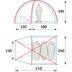 Пропитка задерживает распространение огня. Швы герметизированы термоусадочной лентой. Узлы палатки, испытывающие высокие нагрузки, усилены более прочной тканью. Ветрозащитный полог (юбка) по периметру палатки прошит прочной стропой. Молнии на внешнем тенте фиксируются алюминиевым крючком. Внутренняя палатка оснащена противомоскитной сеткой, карманами, кольцом для фонаря. Эффективная система вентиляции состоит из одного вентиляционного окна с ветровым клапаном, расположенного в верхней точке купола, и одного торцевого окна с внешней шторкой на молнии. В комплекте дополнительные стальные стойки для пологов дверей и дно для тамбура палатки. Большой тамбур для полевой кухни и вещей оборудован большим окном из прозрачного материала.