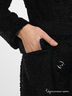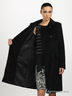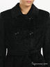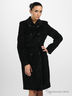 Элегантное двубортное пальто прямого покроя из искусственного каракуля. Отложной воротник. Застегивается на пуговицы в тон. Два прорезных кармана с клапанами. Талия подчеркнута поясом.