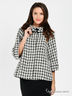 Детали: отложной ворот; застегивается на пуговицы; два кармана; широкий рукав 3/4; поролоновые плечики; стильный принт - гусиная лапка